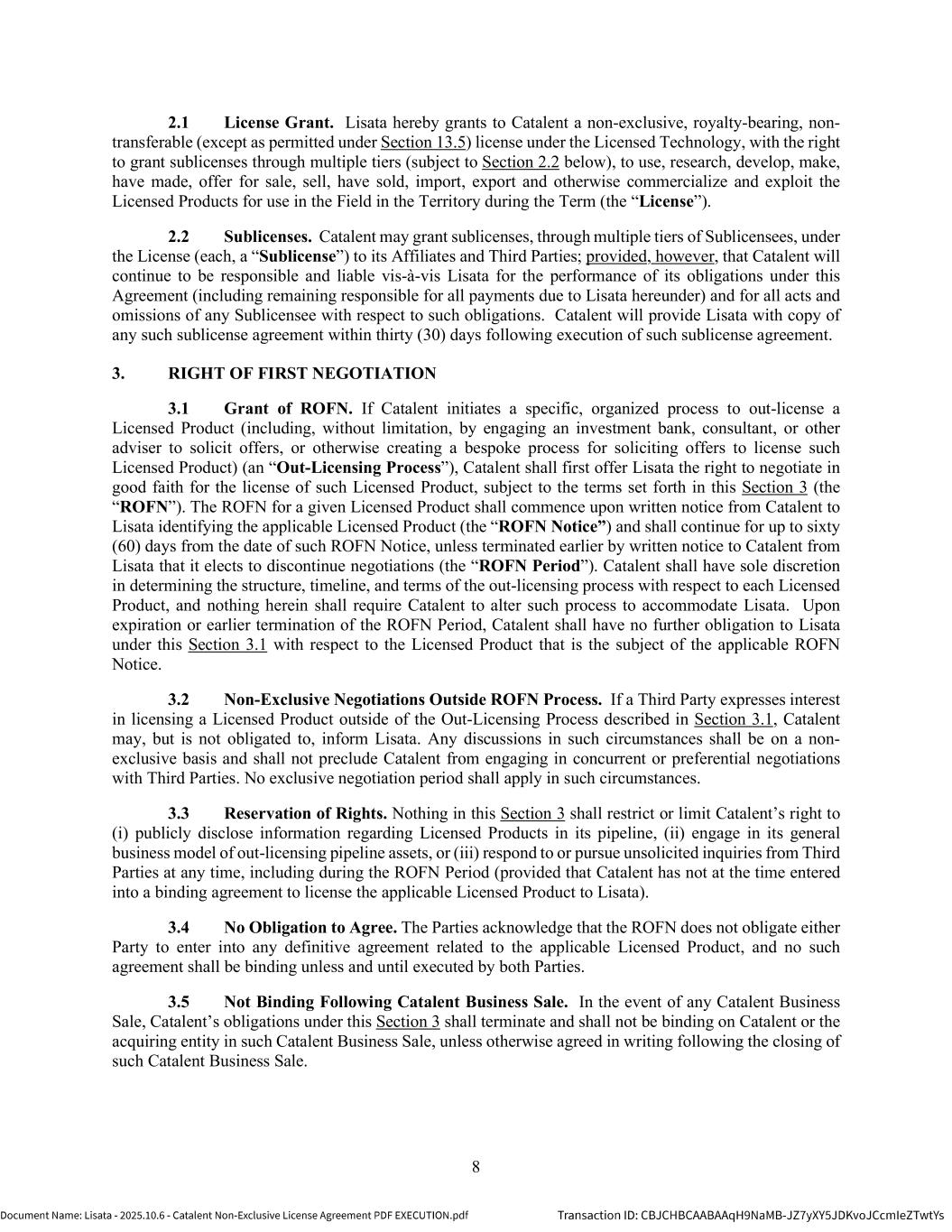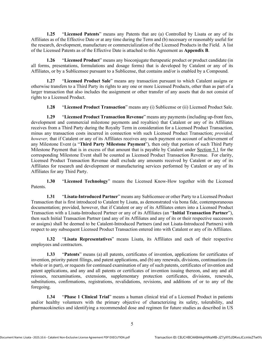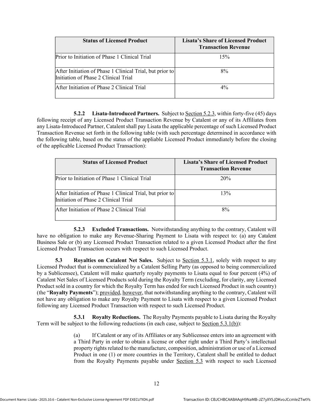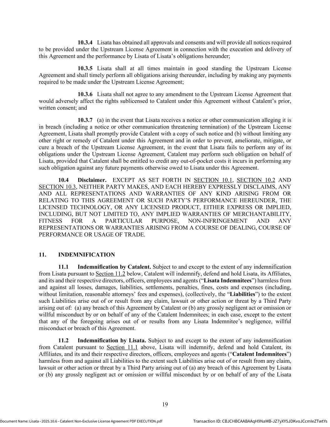 | | Non-Exclusive License Agreement, dated as of October 8, 2025, by and between Lisata Therapeutics, Inc. and Catalent, Inc. |