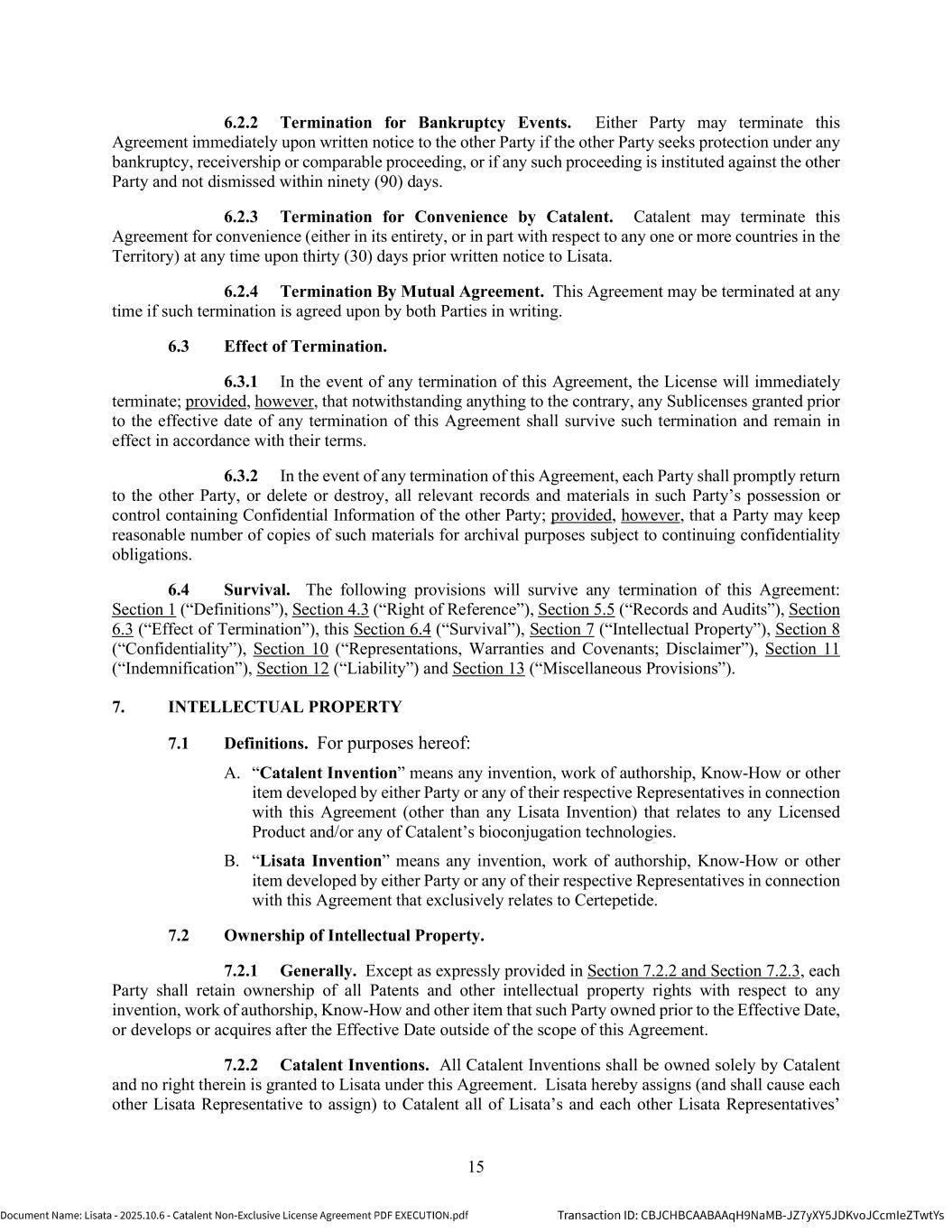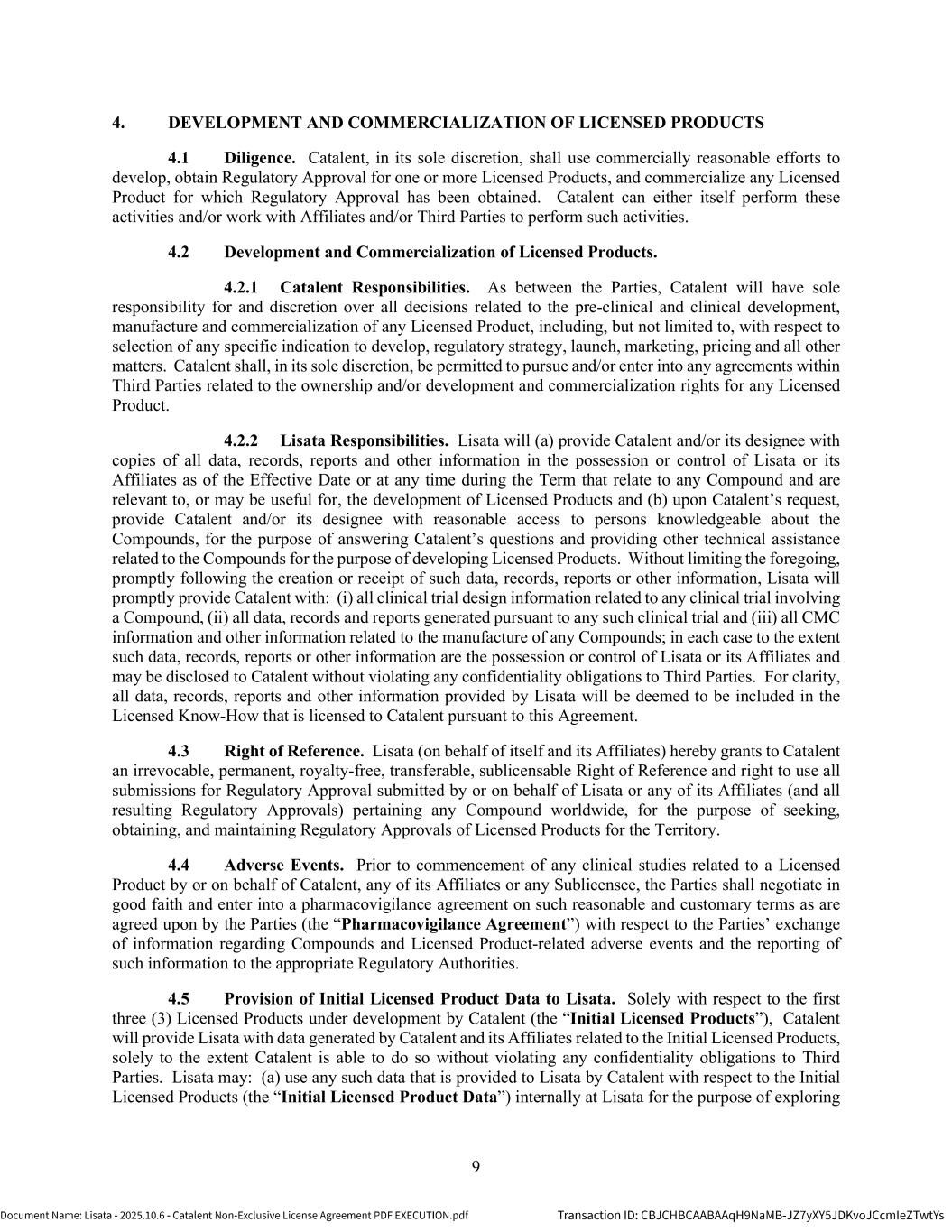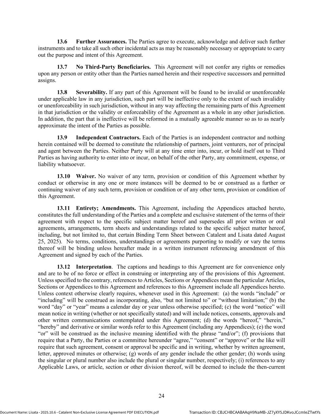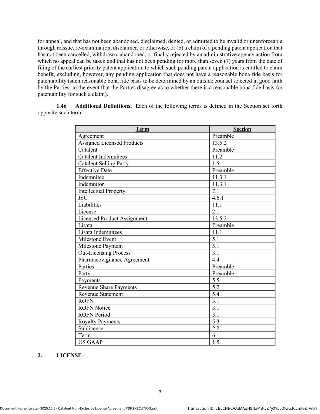 | | Non-Exclusive License Agreement, dated as of October 8, 2025, by and between Lisata Therapeutics, Inc. and Catalent, Inc. |
