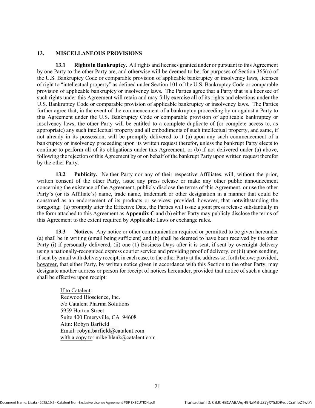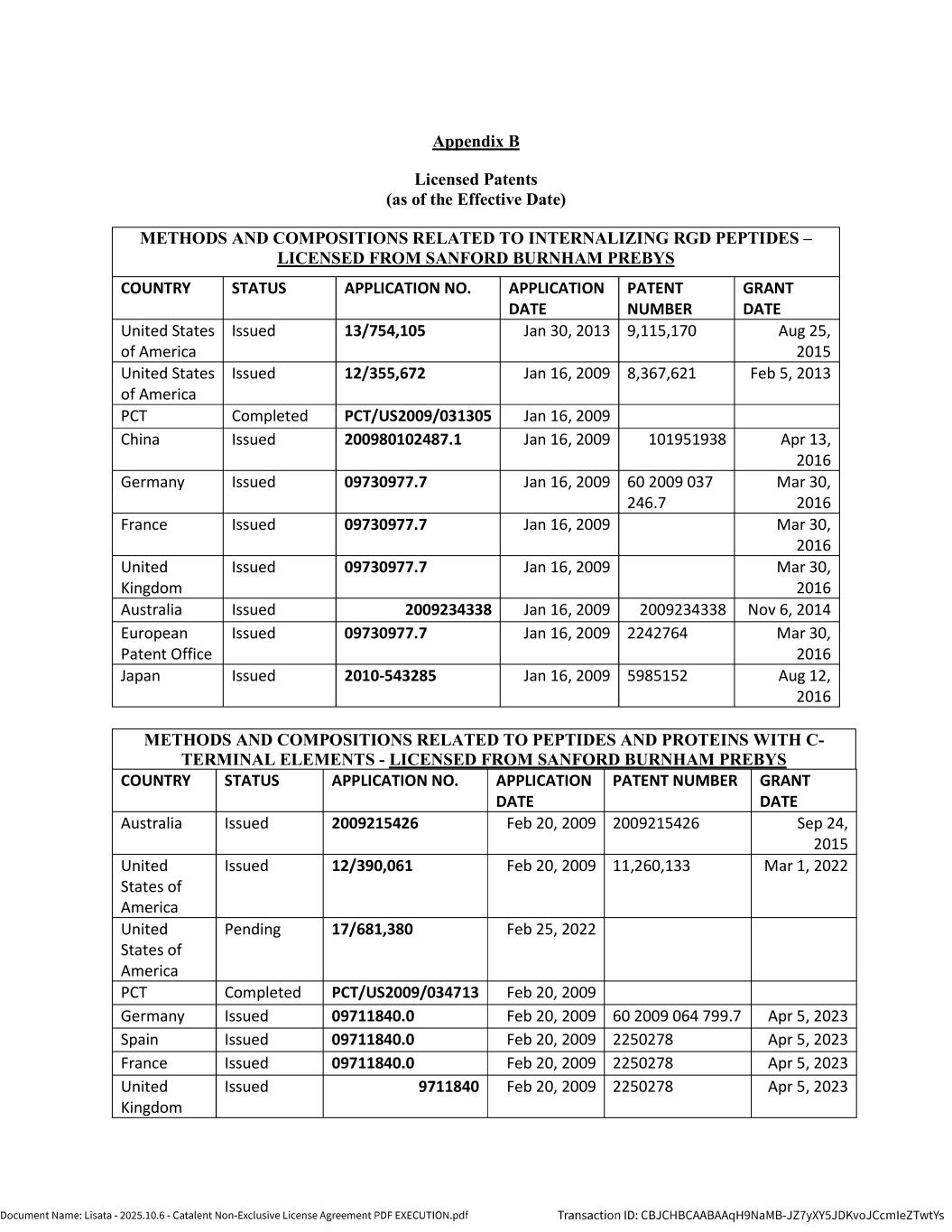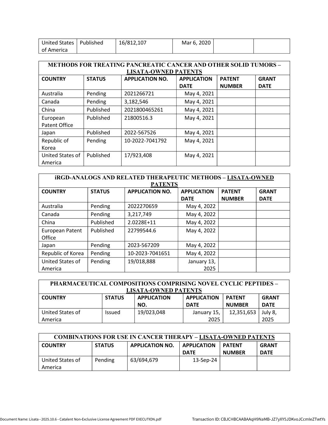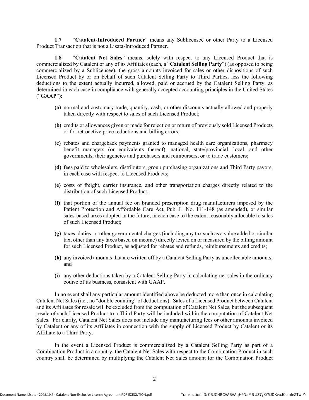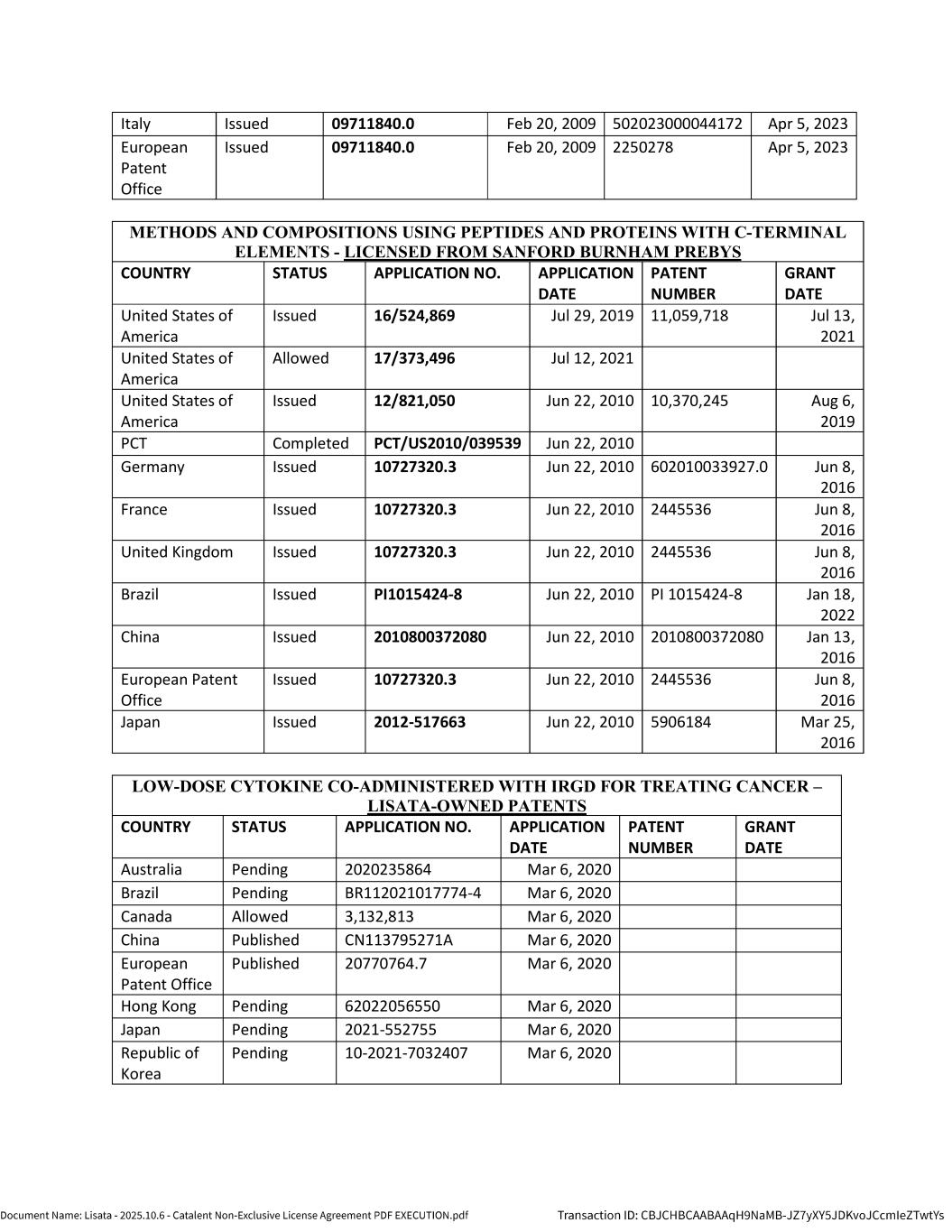 | | Non-Exclusive License Agreement, dated as of October 8, 2025, by and between Lisata Therapeutics, Inc. and Catalent, Inc. |