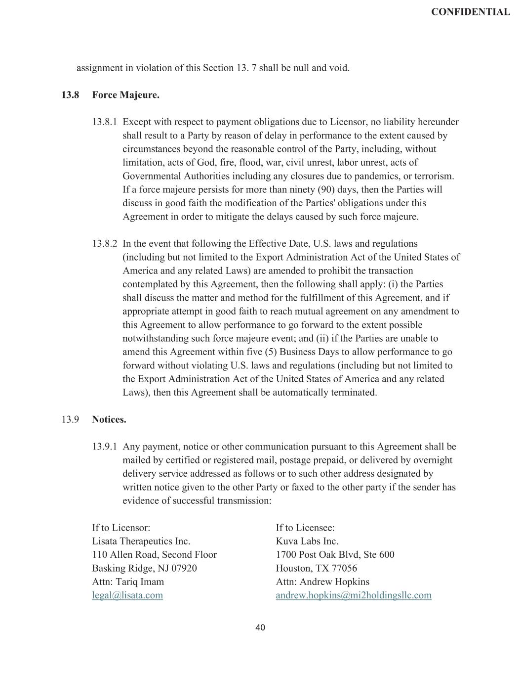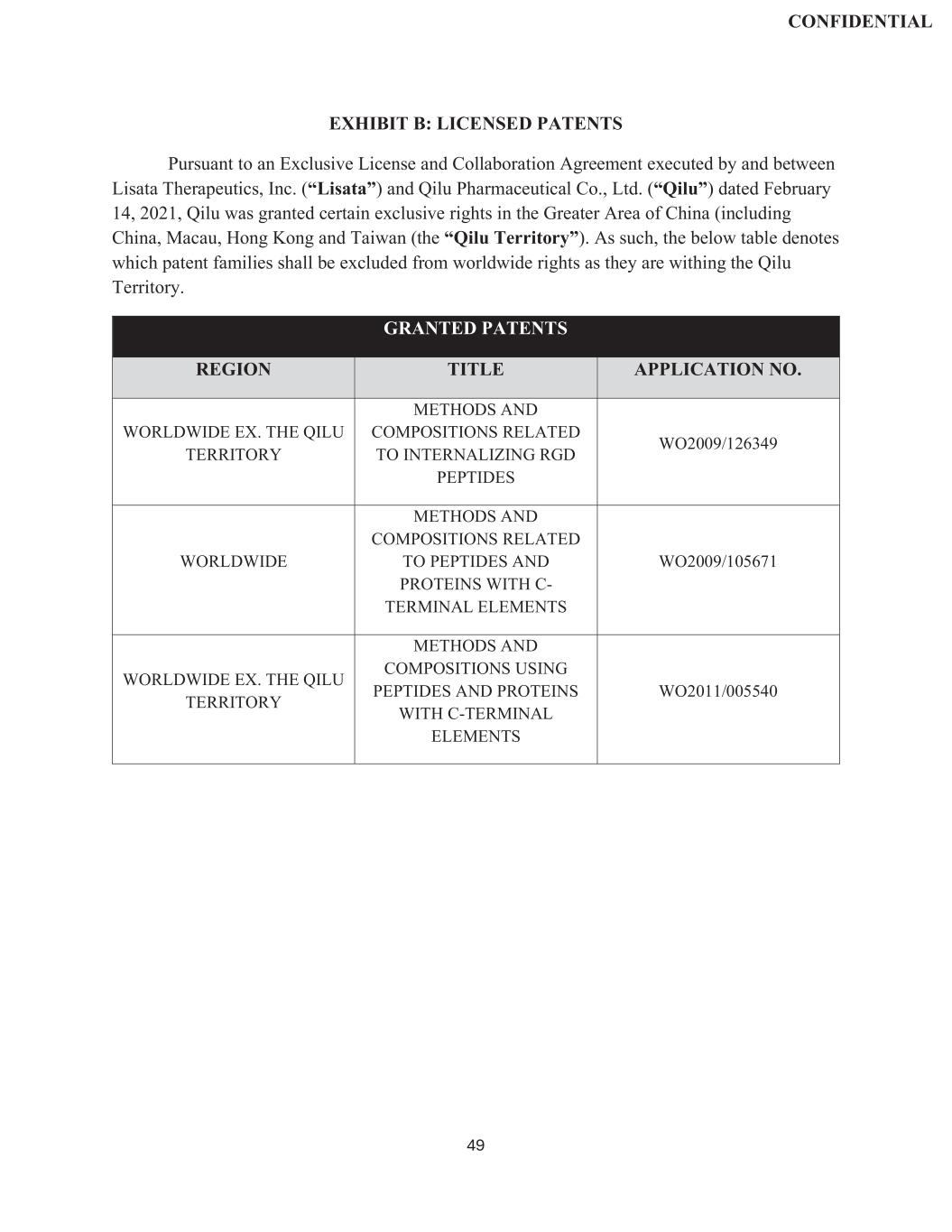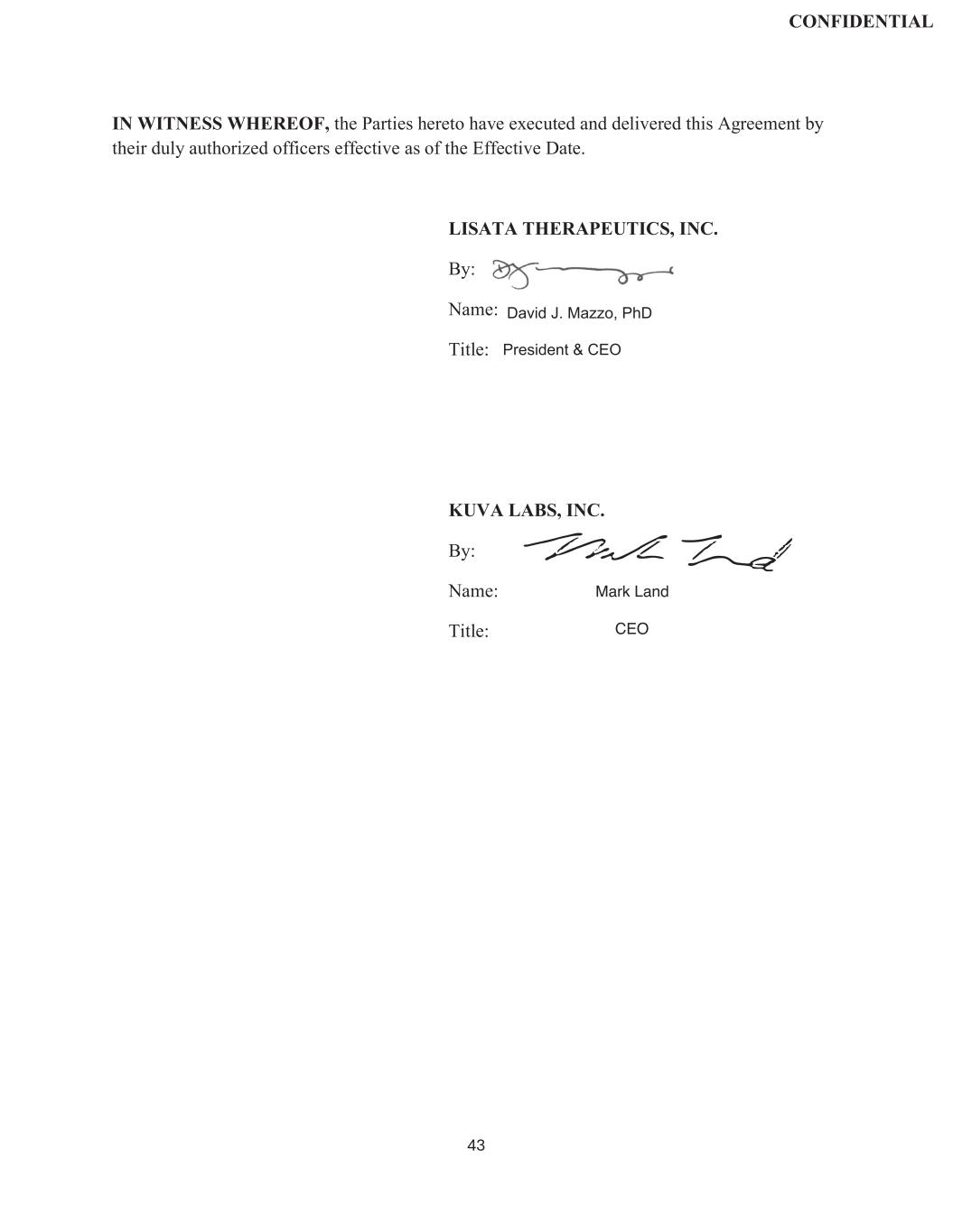 | | Exclusive License and Collaboration Agreement, dated as of November 30, 2024, by and between Lisata Therapeutics, Inc. and Kuva Labs, Inc. |