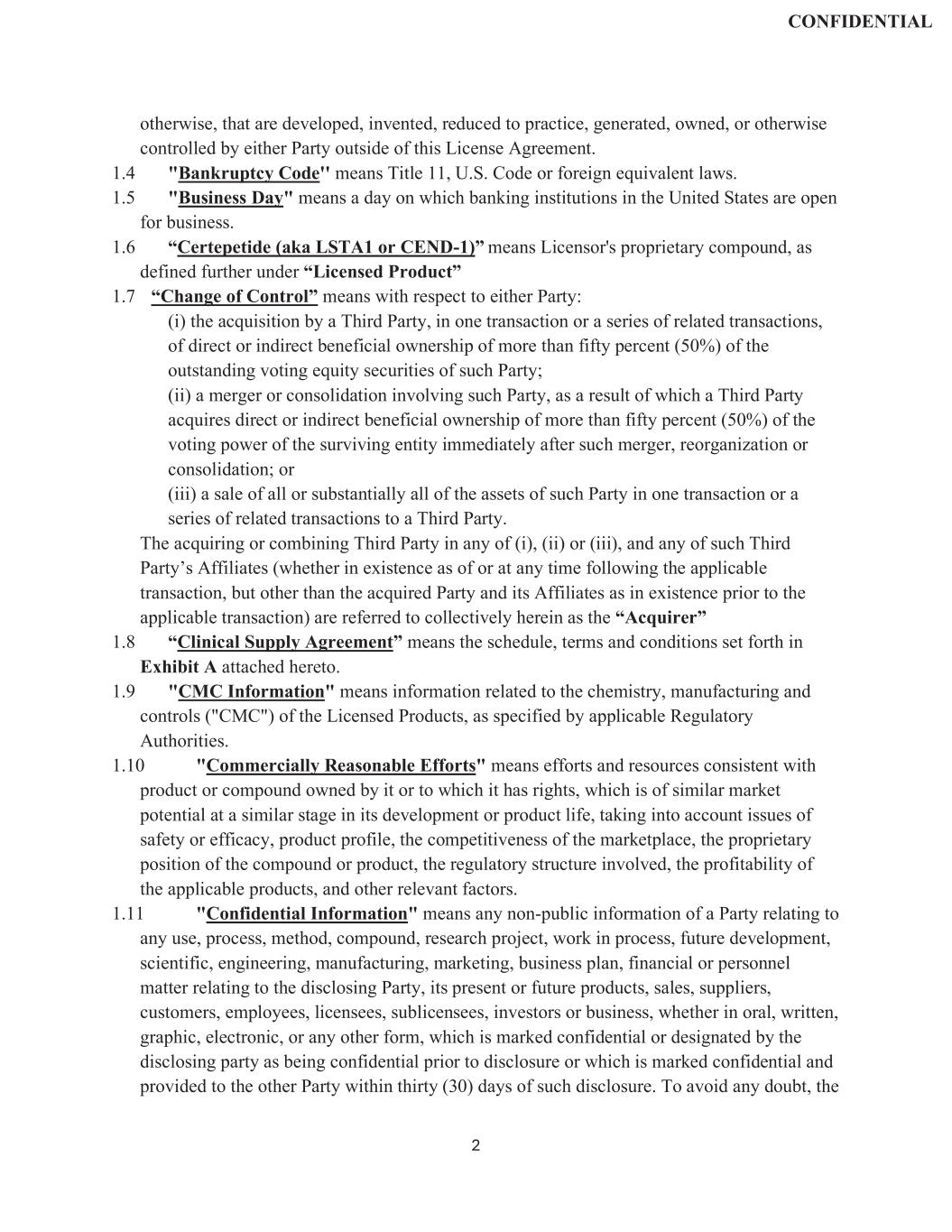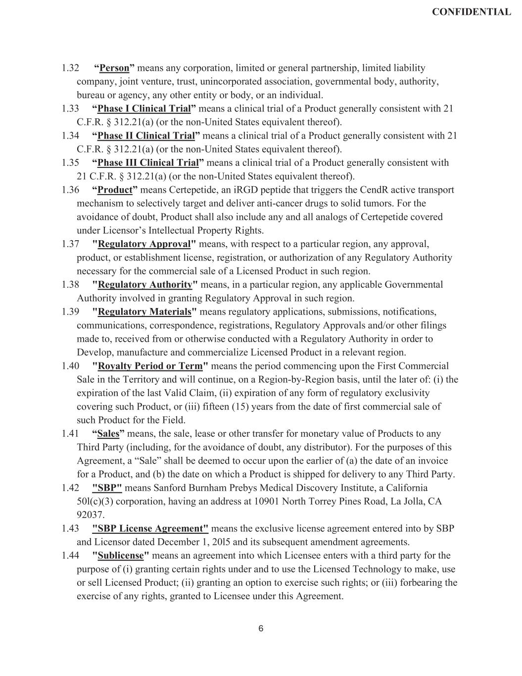 | | Exclusive License Agreement, dated December 1, 2015, by and between Cend Therapeutics, Inc. (f/k/a DrugCendR, LLC) and Sanford Burnham Prebys Medical Discovery Institute (filed as Exhibit 10.18 to the Company's Registration Statement on Form S-4, filed with the SEC on June 15, 2022). |
