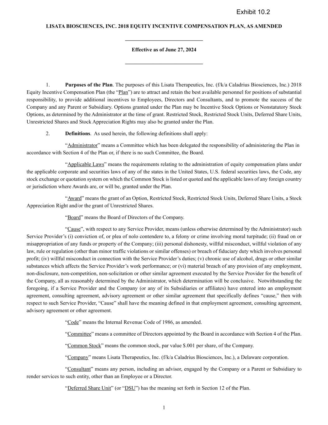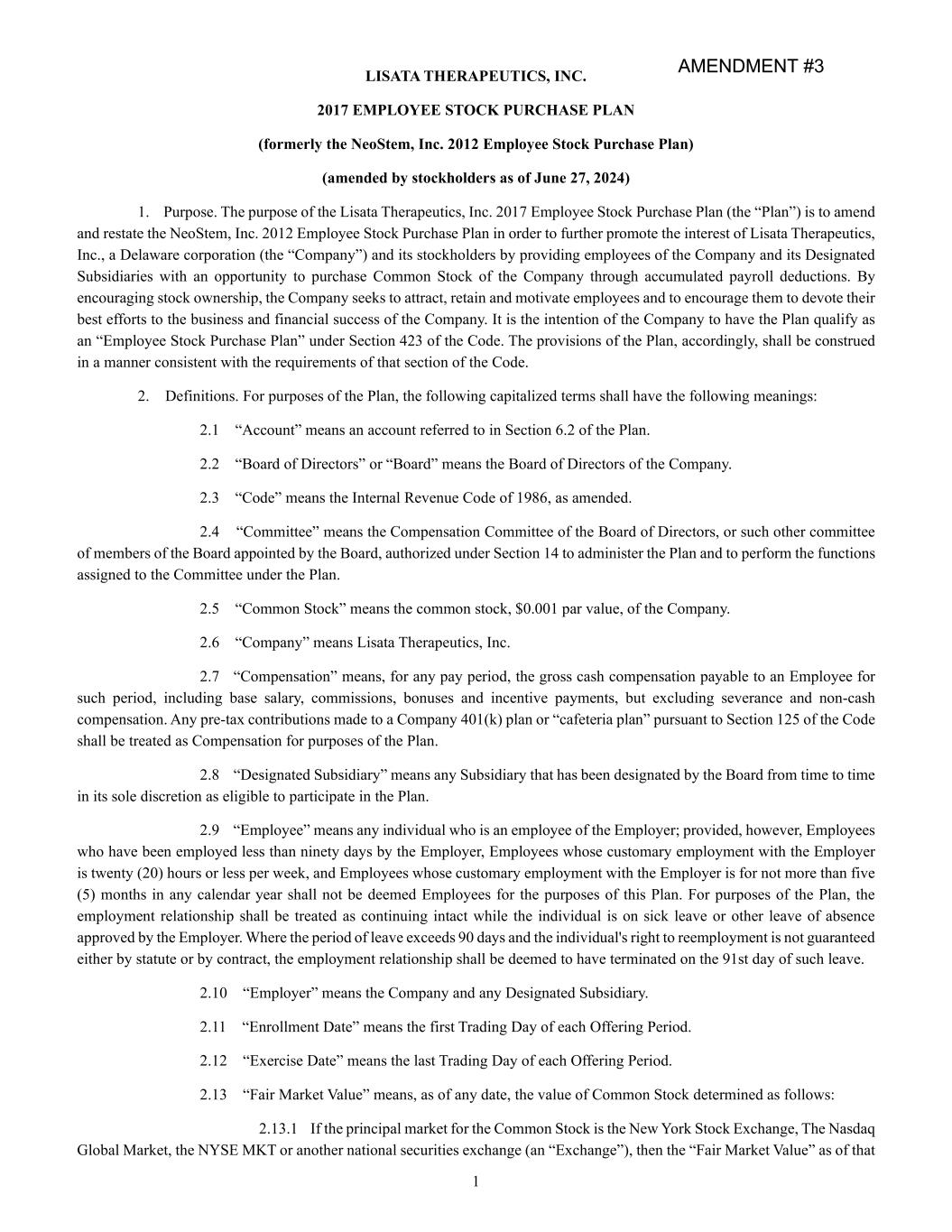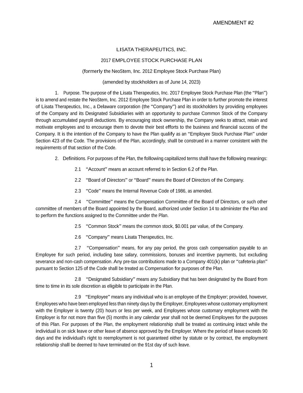 | | | LISATA THERAPEUTICS, INC. |