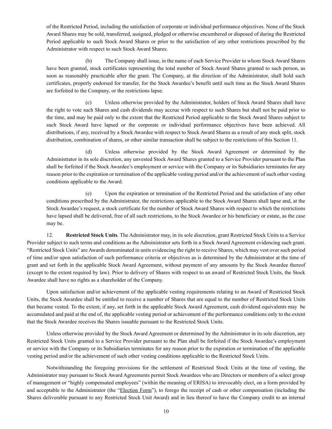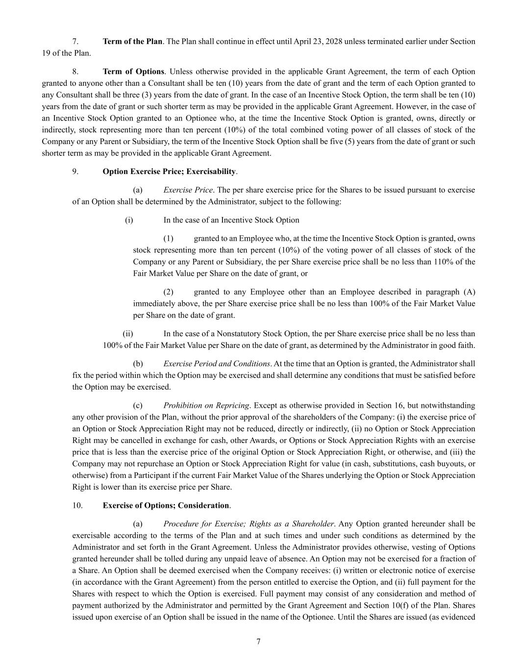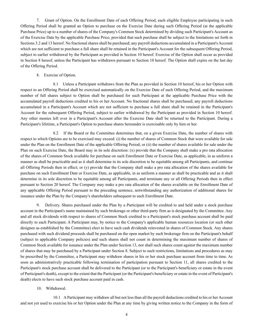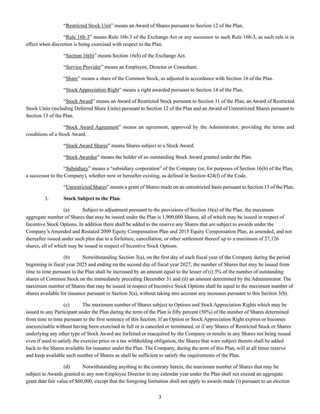 | + | 2018 Equity Incentive Compensation Plan, effective June 20, 2018, as amended on June 18, 2020, June 16, 2021, September 15, 2022, June 14, 2023 and June 27, 2024. |