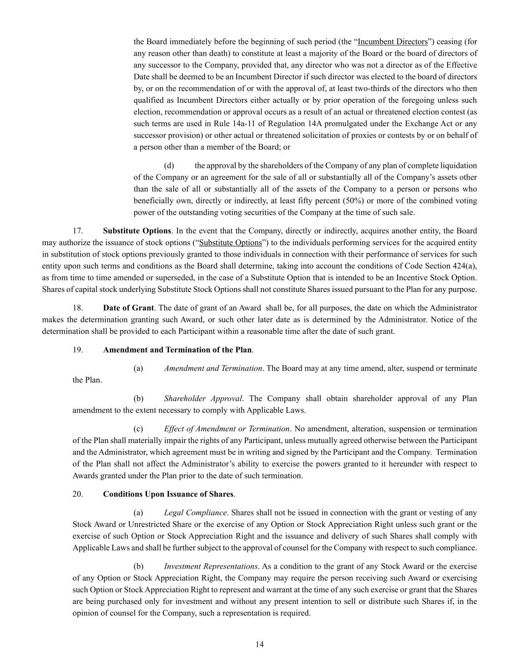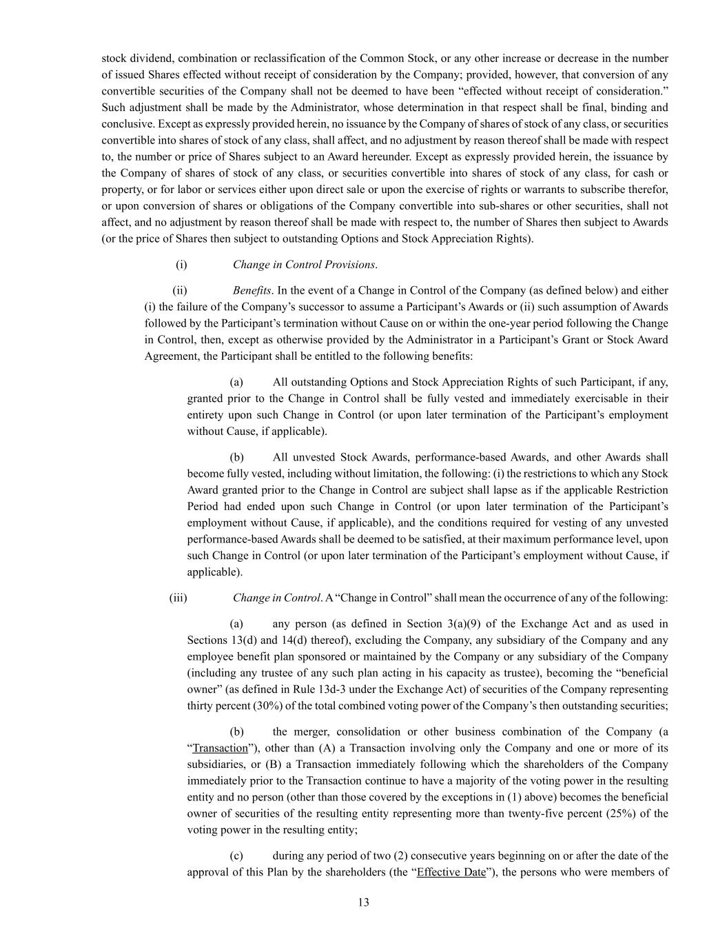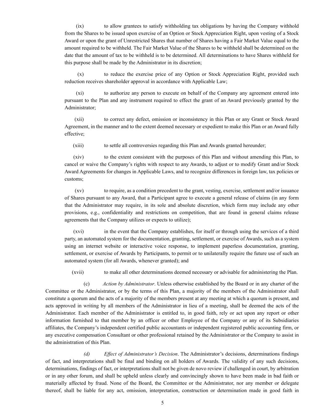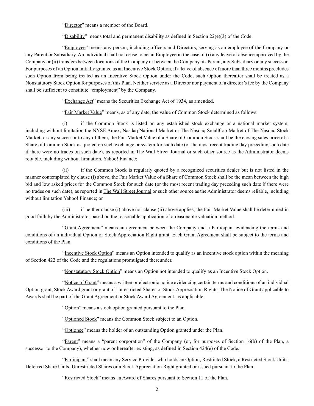 | + | 2018 Equity Incentive Compensation Plan, effective June 20, 2018, as amended on June 18, 2020, June 16, 2021, September 15, 2022, June 14, 2023 and June 27, 2024. |