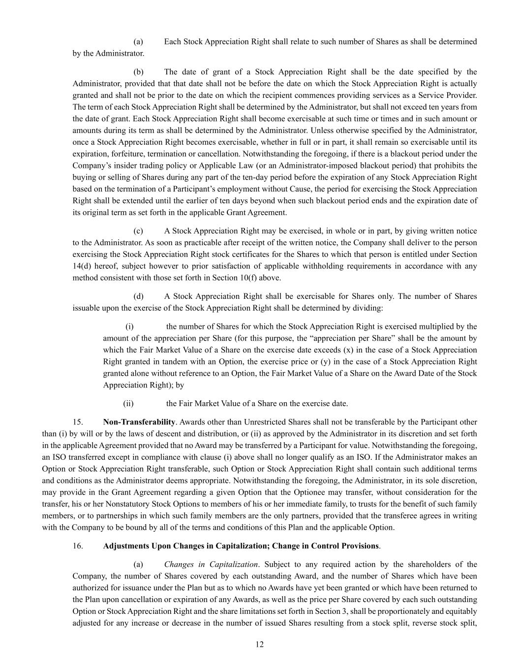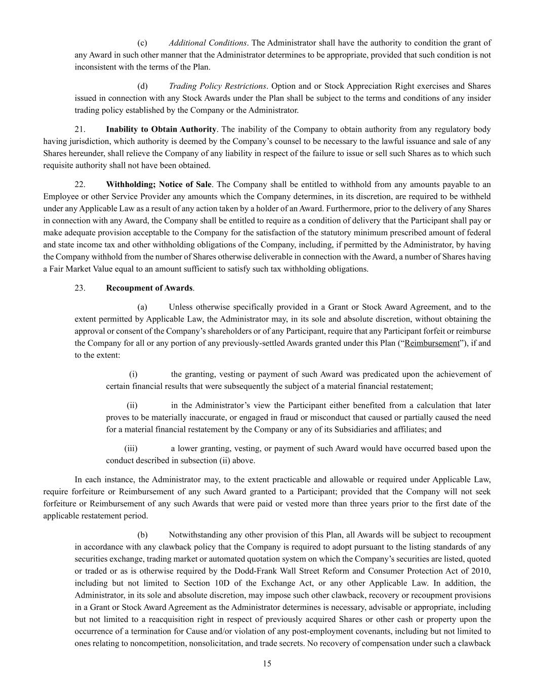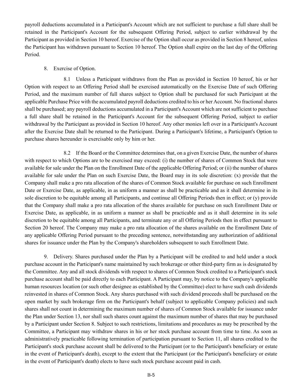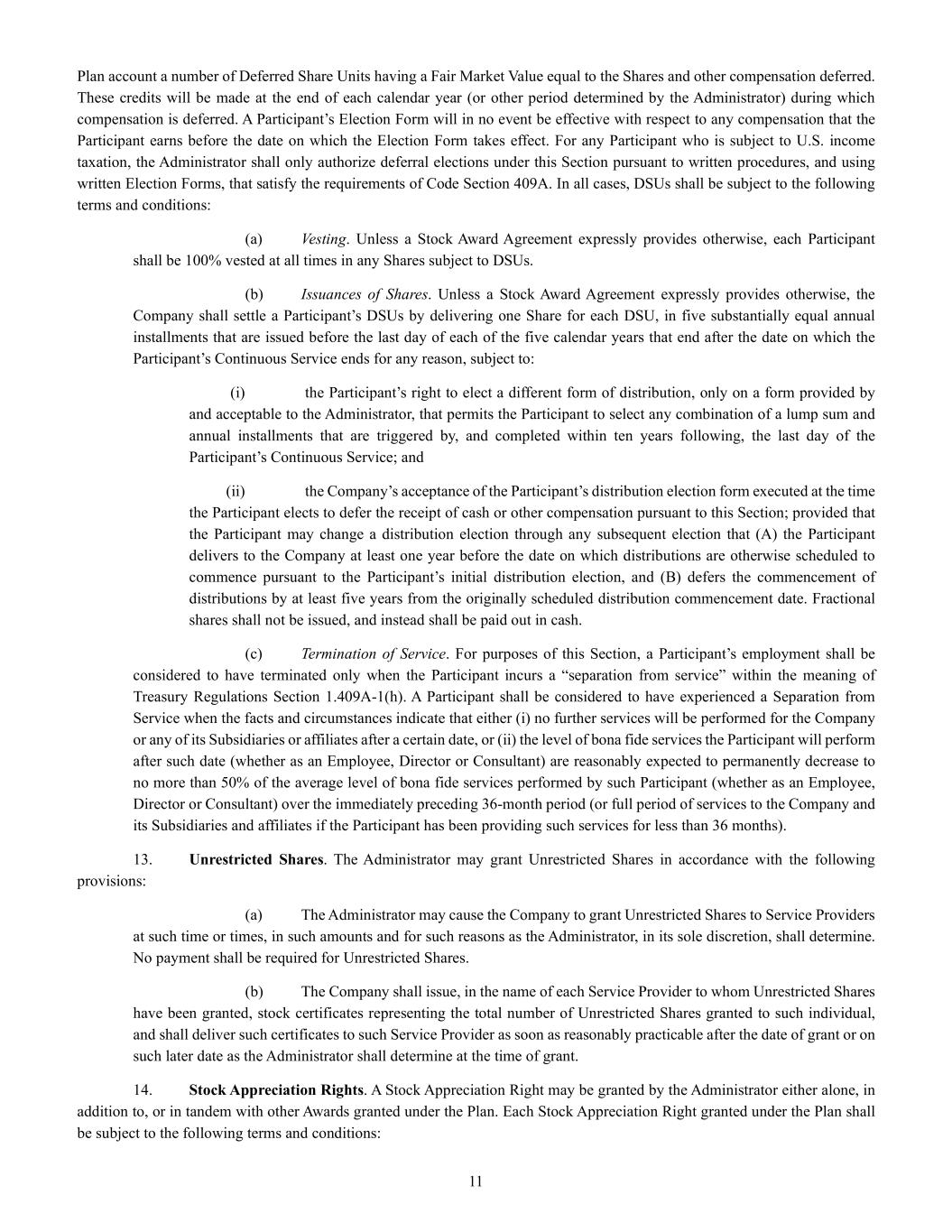 | + | 2018 Equity Incentive Compensation Plan, effective June 20, 2018, as amended on June 18, 2020, June 16, 2021, September 15, 2022, June 14, 2023 and June 27, 2024. |