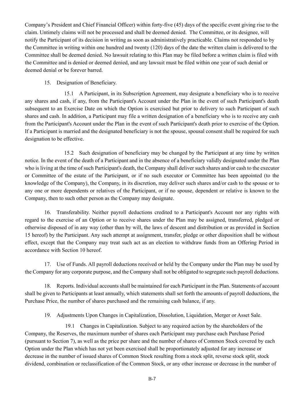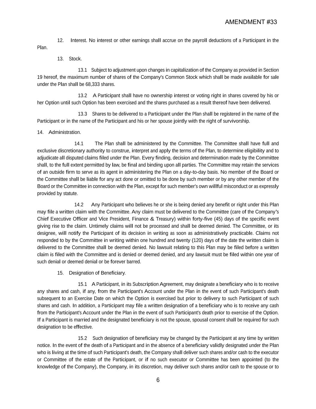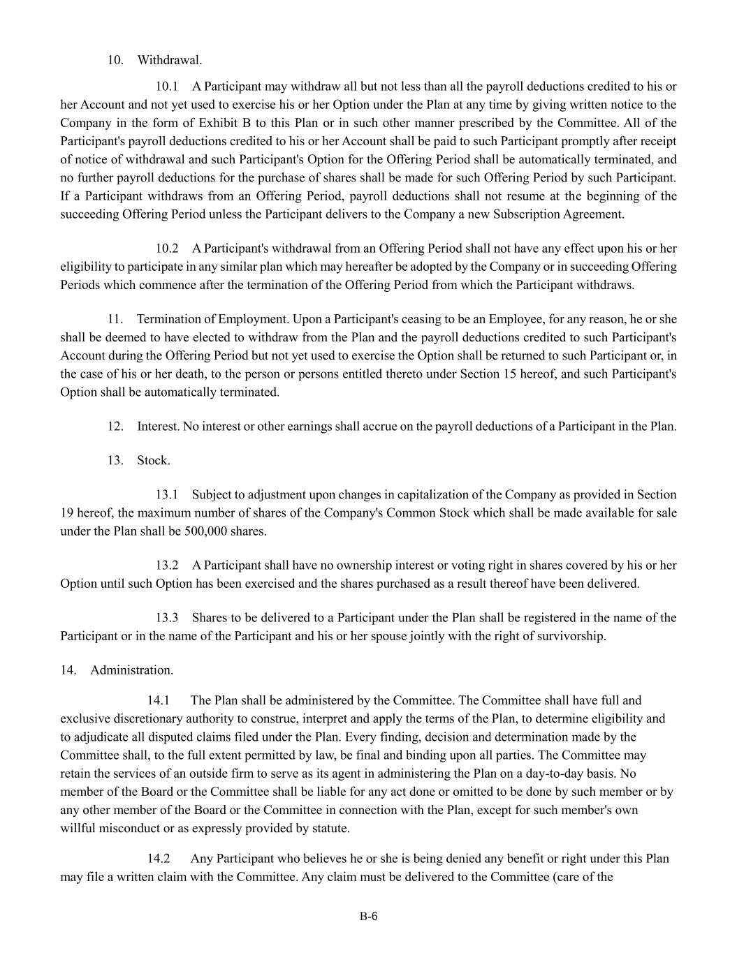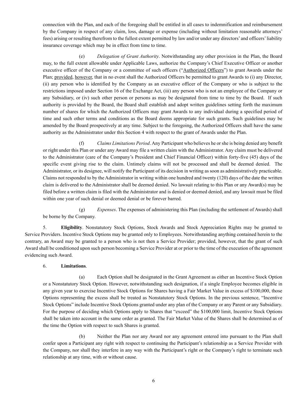 | + | 2018 Equity Incentive Compensation Plan, effective June 20, 2018, as amended on June 18, 2020, June 16, 2021, September 15, 2022, June 14, 2023 and June 27, 2024. |