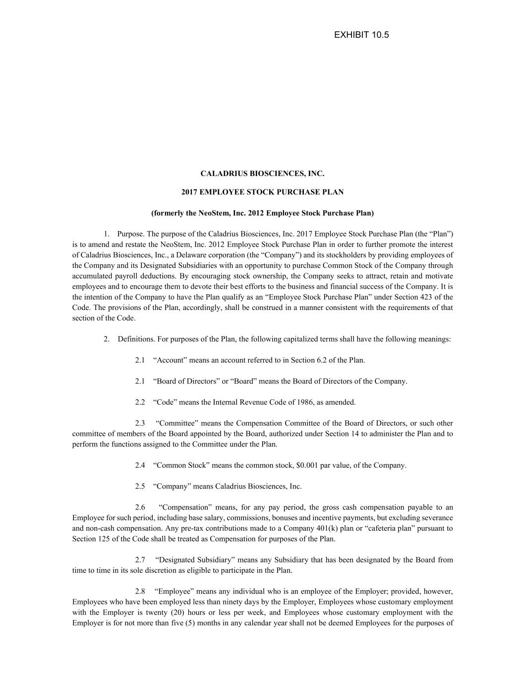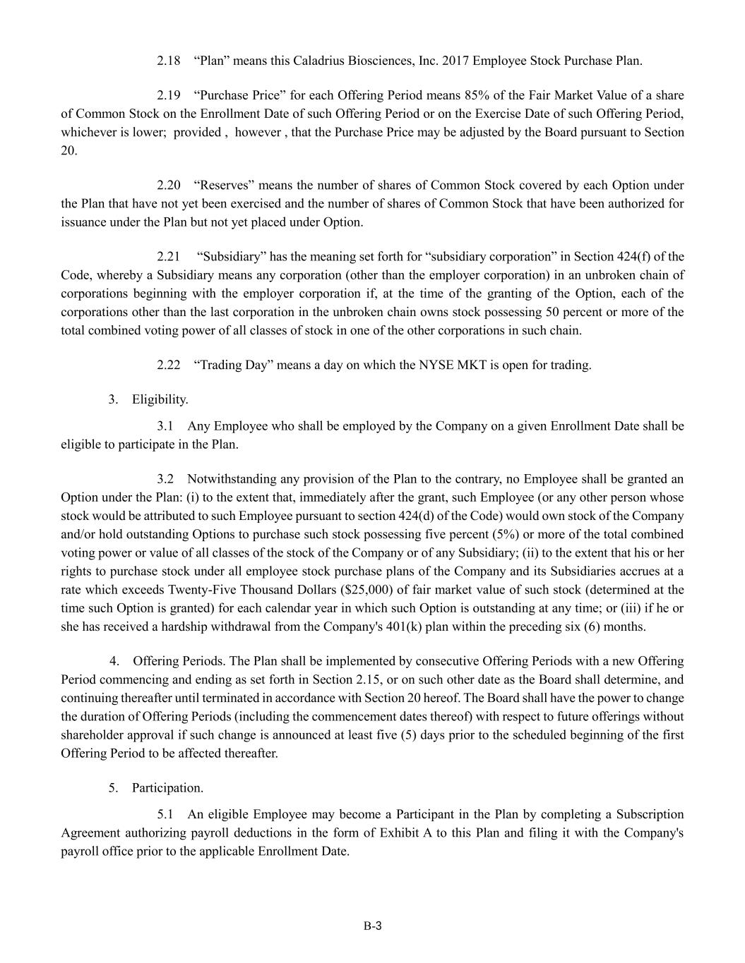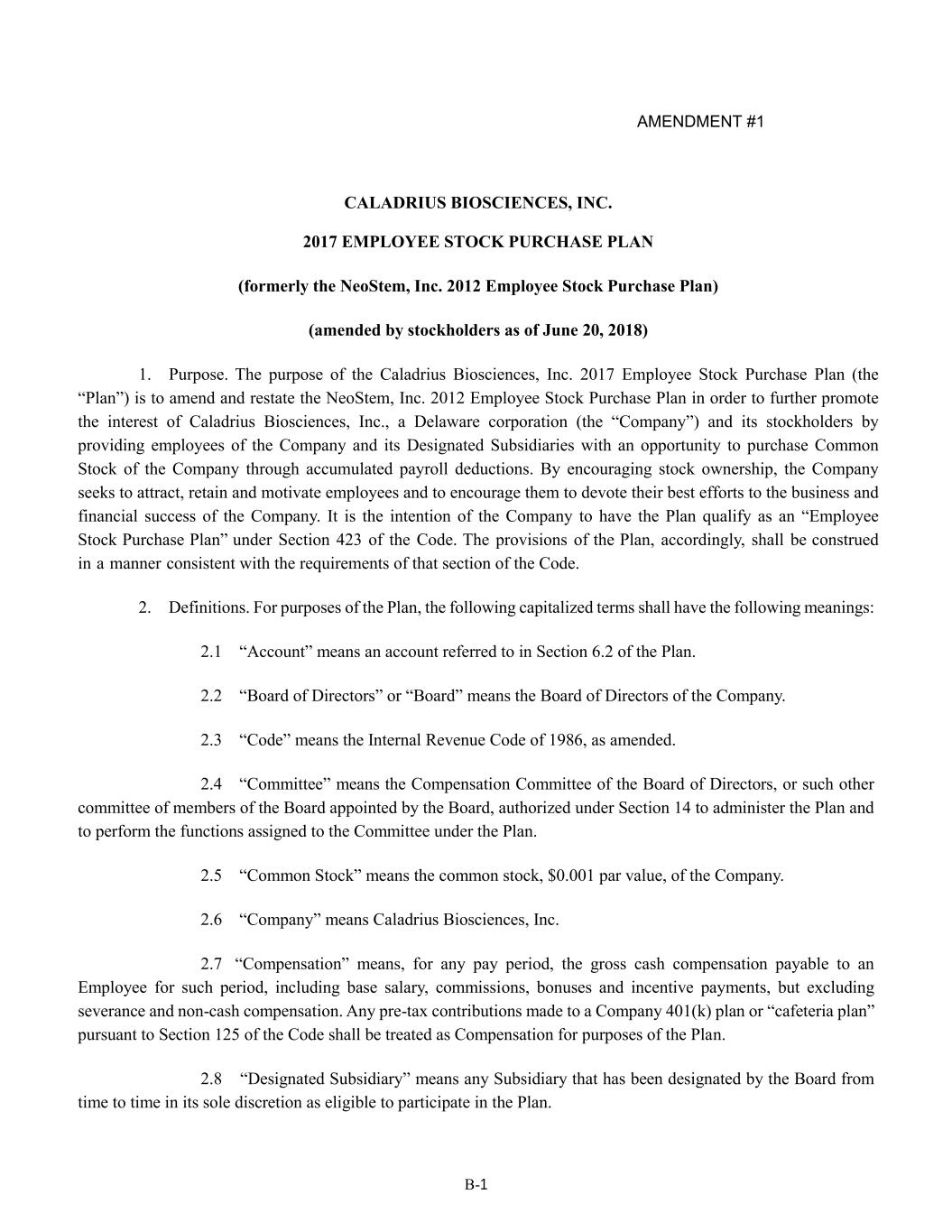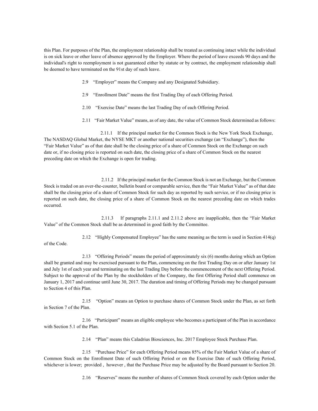 | | At The Market Offering Agreement, dated June 4, 2021, by and between Caladrius Biosciences, Inc. and H.C. Wainwright & Co., LLC (filed as Exhibit 10.1 to the Company's Current Report on Form 8-K, filed with the SEC on June 4, 2021). |