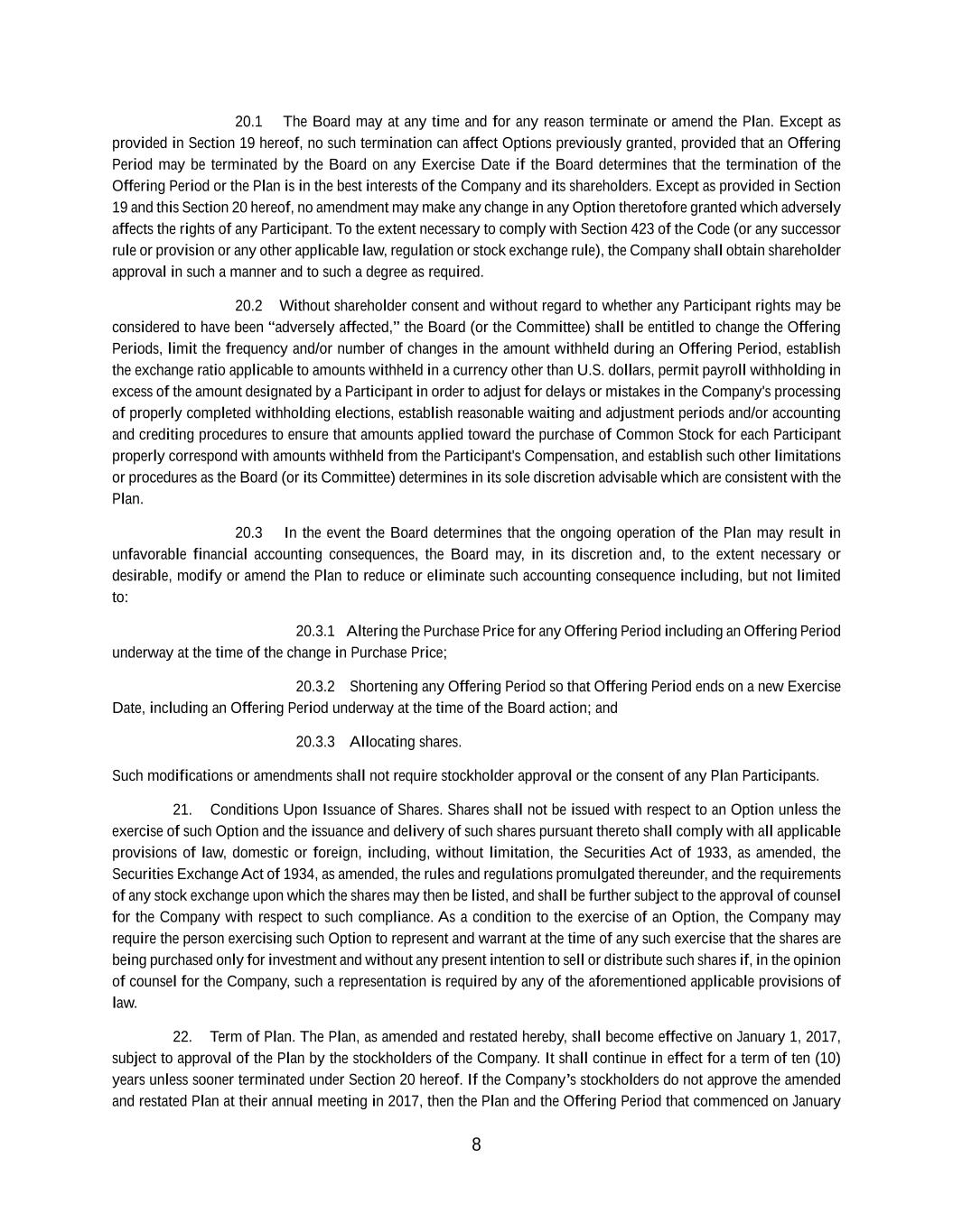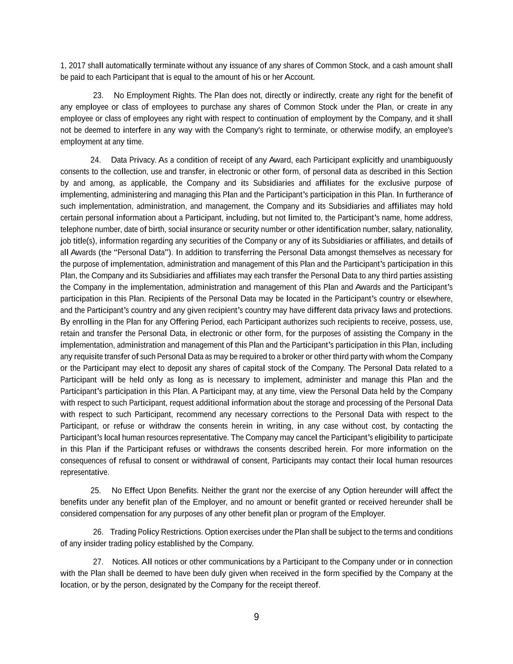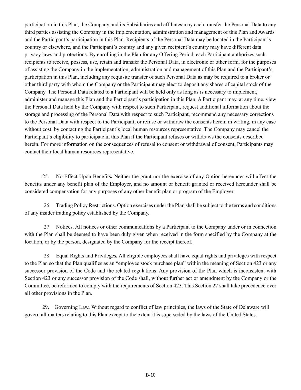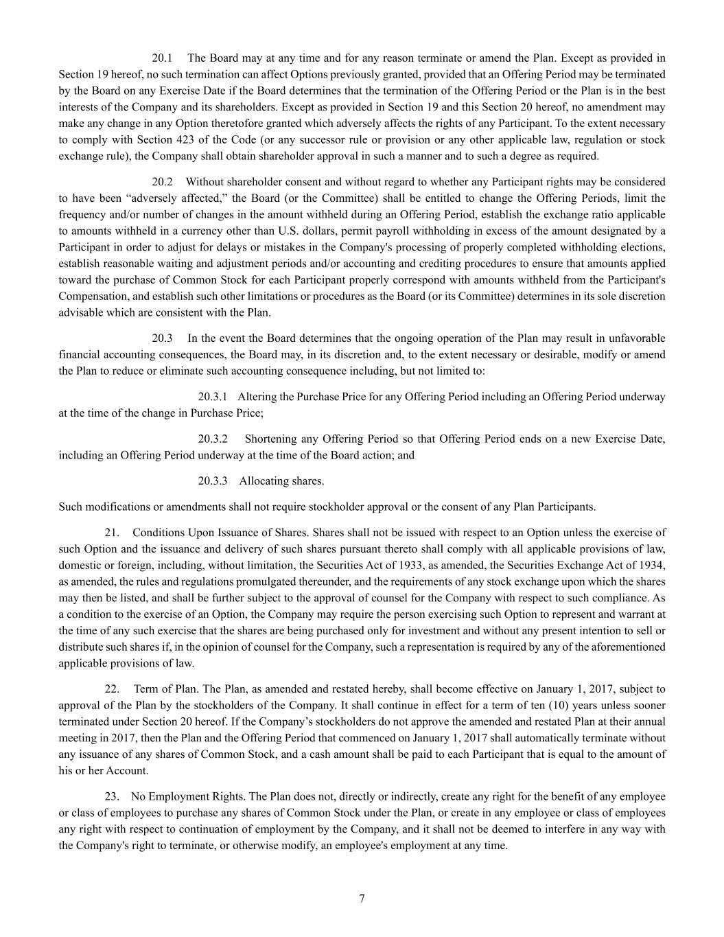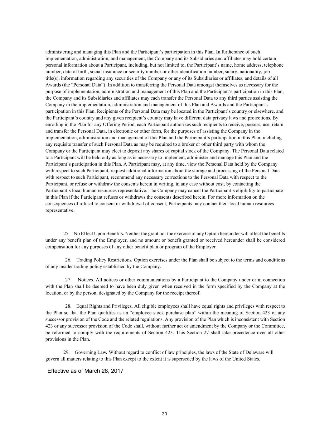 | + | 2017 Employee Stock Purchase Plan, effective as of March 28, 2017, as amended on June 20, 2018, June 14, 2023 and June 27, 2024. |
