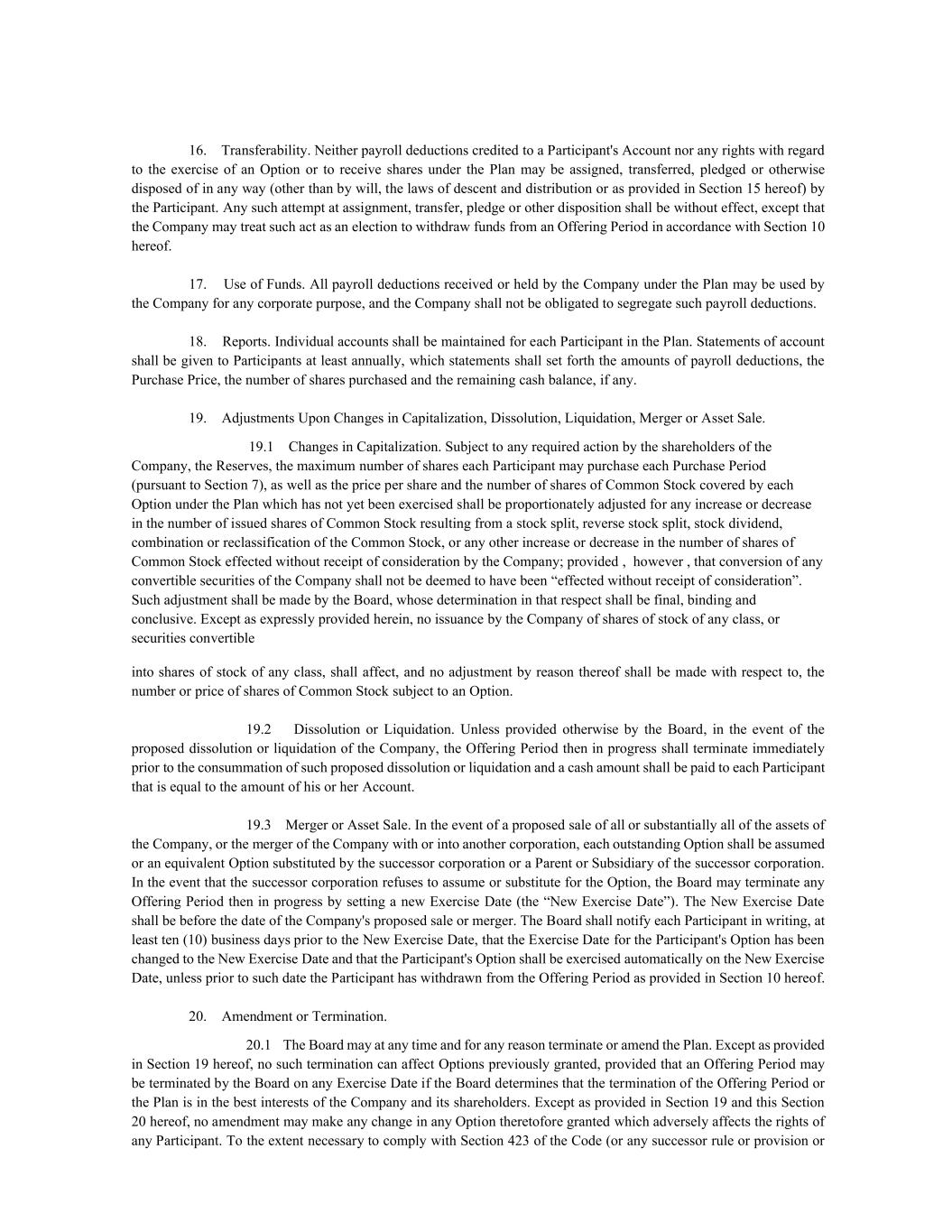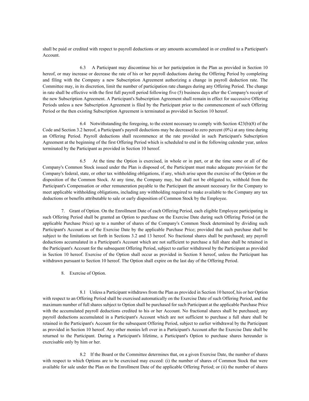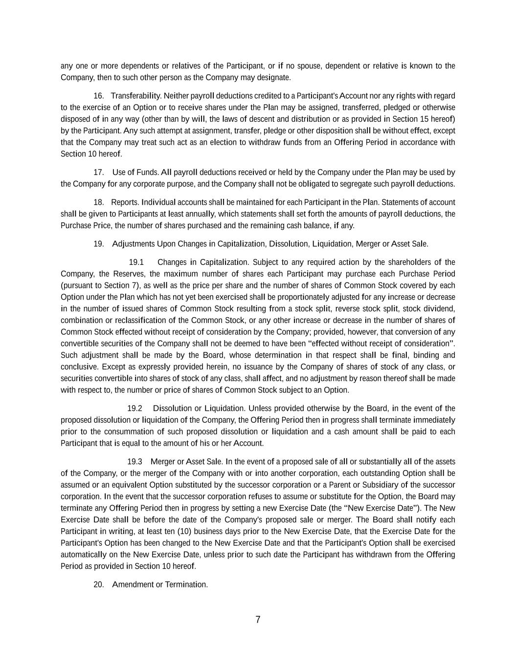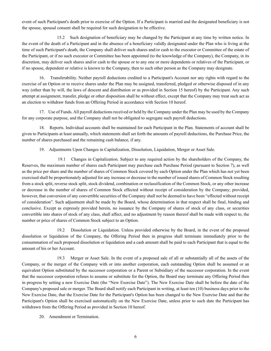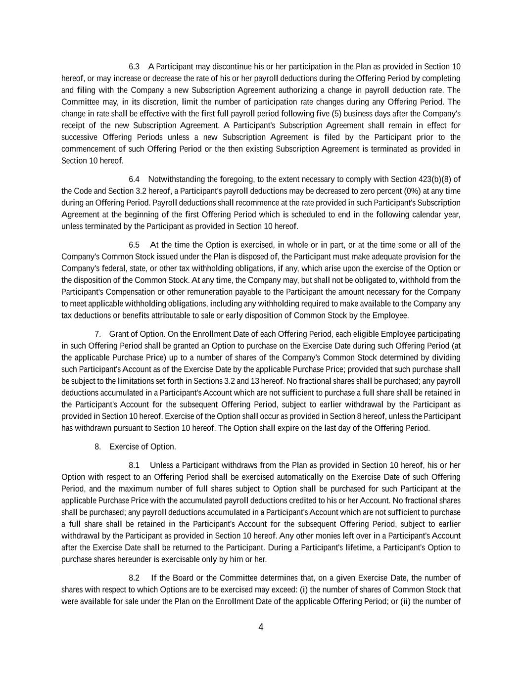 | + | 2017 Employee Stock Purchase Plan, effective as of March 28, 2017, as amended on June 20, 2018, June 14, 2023 and June 27, 2024. |