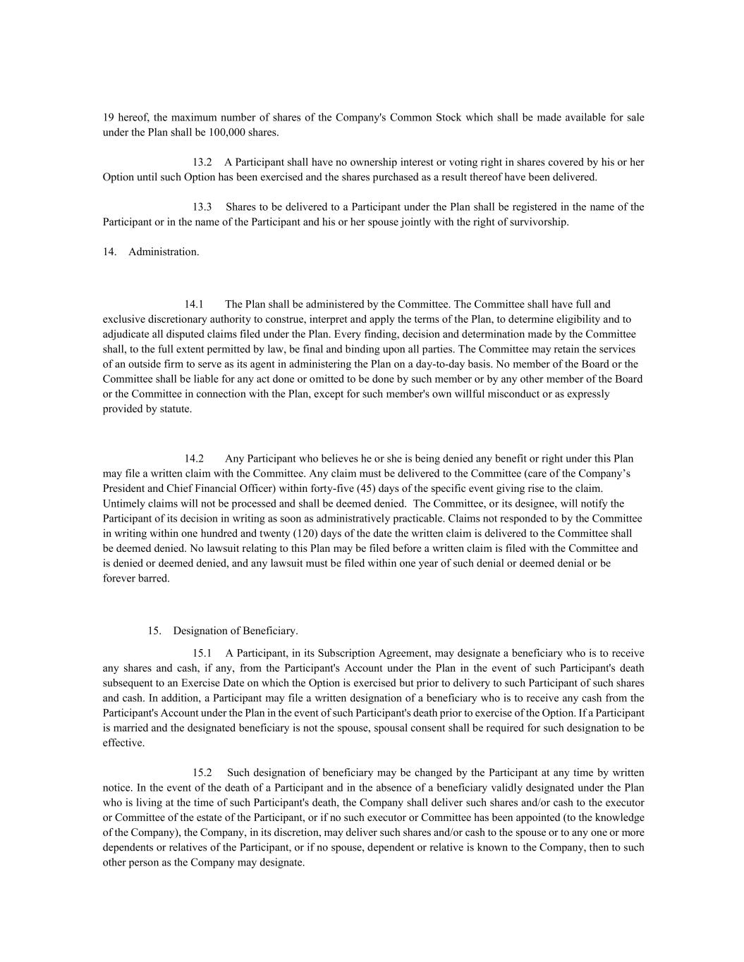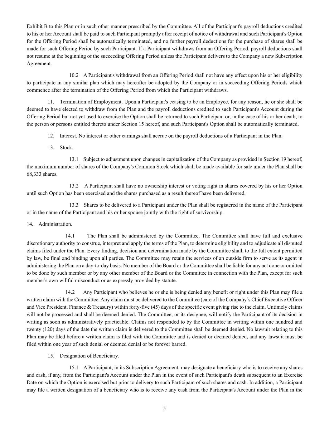 | + | 2015 Equity Incentive Compensation Plan, effective July 15, 2015 (filed as Exhibit 10.4 to the Company's Annual Report on Form 10-K for the year ended December 31, 2022, filed with the SEC on March 30, 2023). |